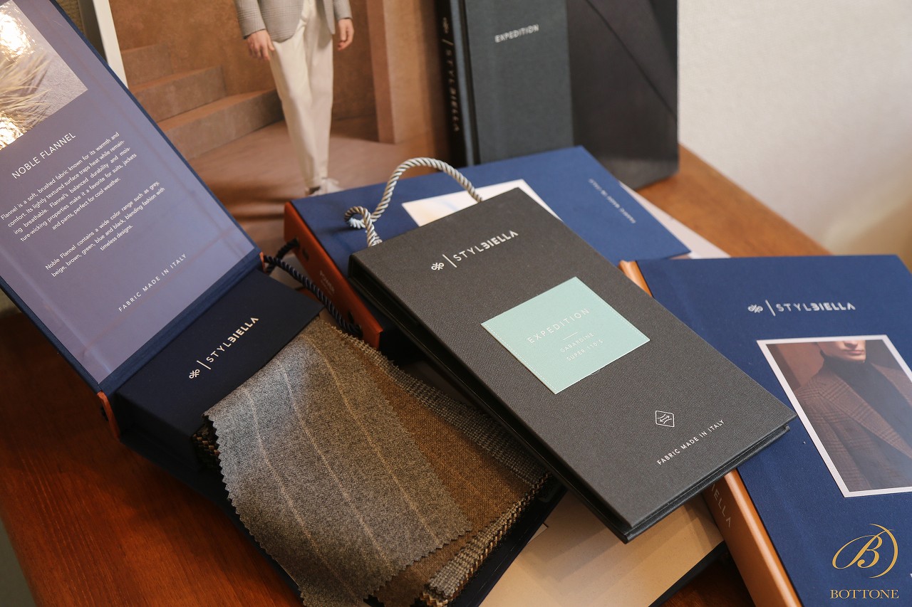 さて、ここからは生地入荷の第一弾となった、イタリアの新鋭「スタイルビエラ」についてご紹介させていただきます。