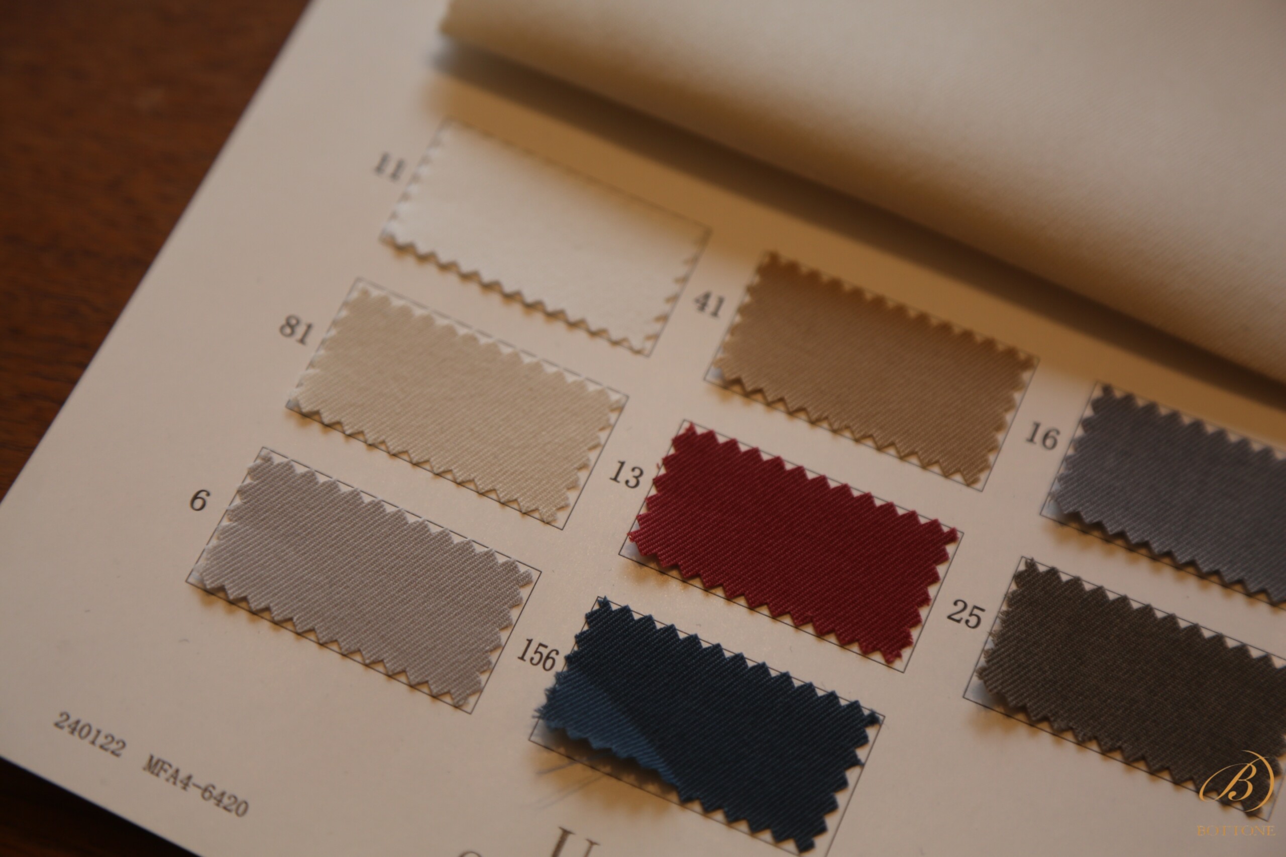 スーツとして汎用性の高いダークネイビーやグレーは定番としてご用意しておりますし、ブラウンやベージュ、グレージュなどのカジュアルな色でお仕立てすることも可能です。