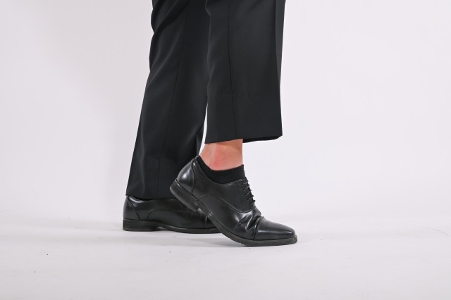 やっぱり避けたいのは、中途半端な長さのソックスで、足を組んだときにパンツの裾から素肌が見えてしまうこと。これは本当に残念です。経営者の方が対談やインタビューで足を組んでいるときに、そこから素肌が見えていると、せっかくの身だしなみがマイナスになってしまいます。女性の方からも結構言われるんですよ。