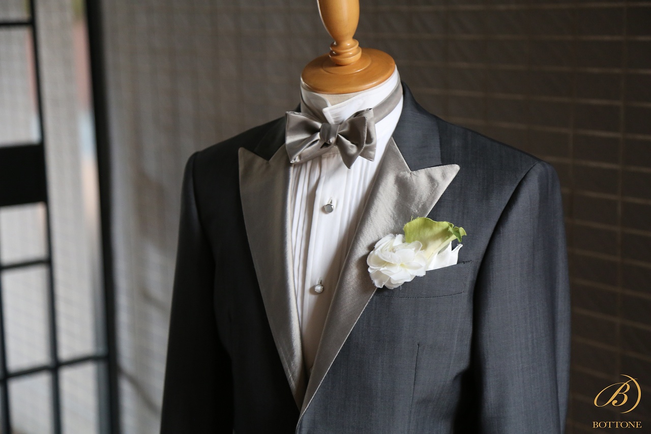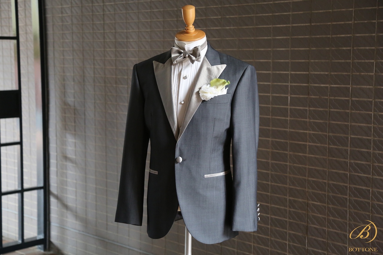 結婚式衣装といえば、シルバーのイメージをお持ちの方も多くいらっしゃいますが、ボットーネでお仕立てするタキシードは挙式後にスーツにリメイクできることもあって、全身シルバーでお仕立てすることは滅多にありません。