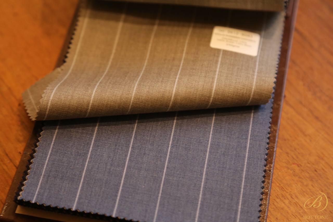 その中でも『ブルーグレー』はまさにニュアンスカラーの筆頭格であり、春夏向けのビジネススーツとして、おそらくボットーネで最もお仕立て実績のある色柄ではないかと思います。
