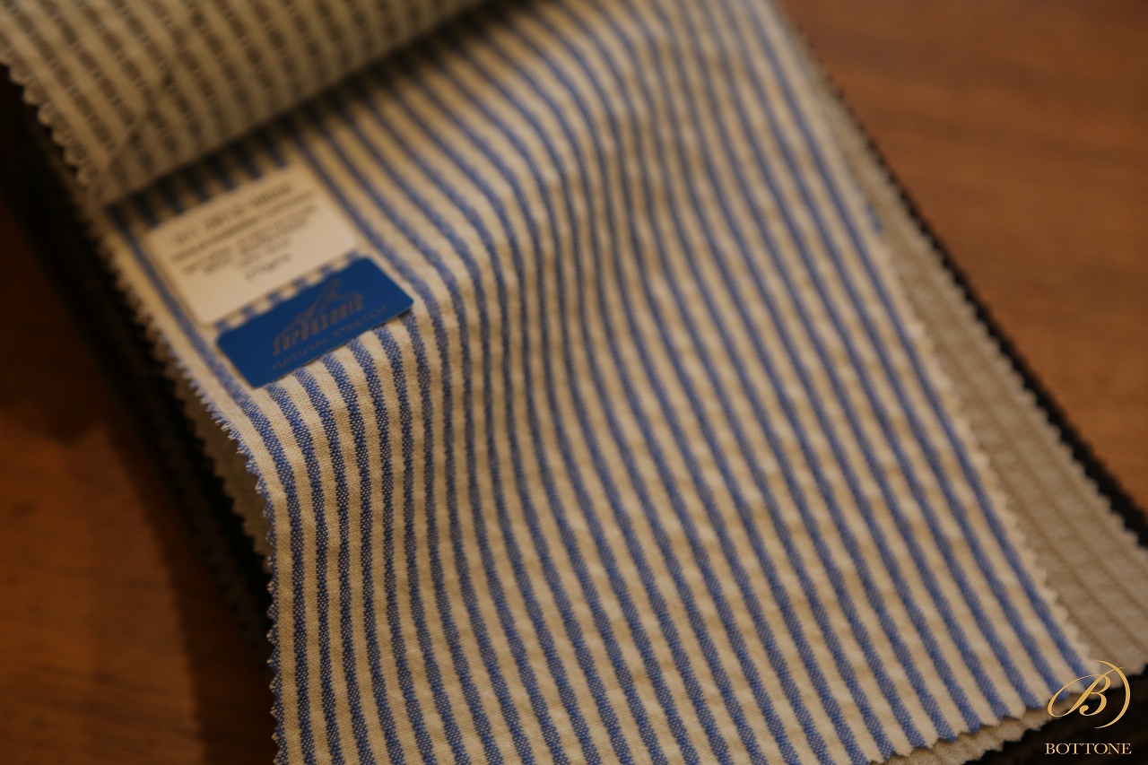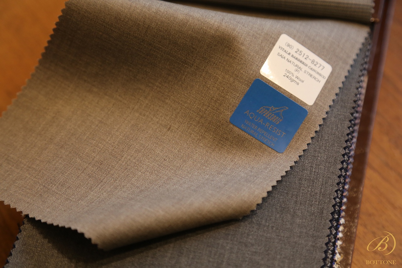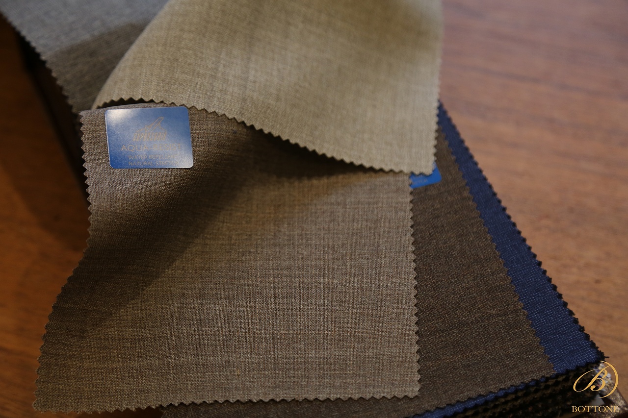 スーツ生地にストレッチ素材が混紡されるようになってから、既にずいぶんな年月が経ちました。しかし登場当初は、正直かなり粗悪なクオリティのものも市場に出回っており、着心地や耐久性に問題があるケースも少なくありませんでした。そのためボットーネとしては、お客様に自信を持っておすすめできる品質になるまで、しばらくの間は静観する姿勢を取っていたのです。