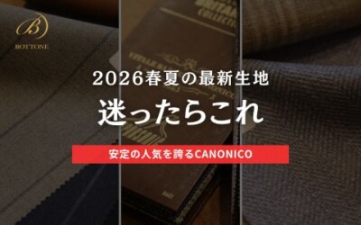 カノニコの大きな特徴 カノニコは非常に名の知れ渡った生地ブランドですので、その特徴を既に把握している方も多いと思いますが、改めて簡 … 続きを読む 2026年春夏の新作生地|オーダースーツの定番生地カノニコ(CANONICO)