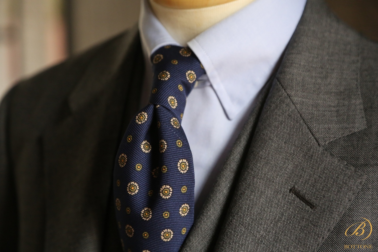 ネクタイも、ネイビー、ボルドー、ブラウン、グリーンなど、ほぼすべての色と相性が良いため、着回しの効率が非常に高いのです。