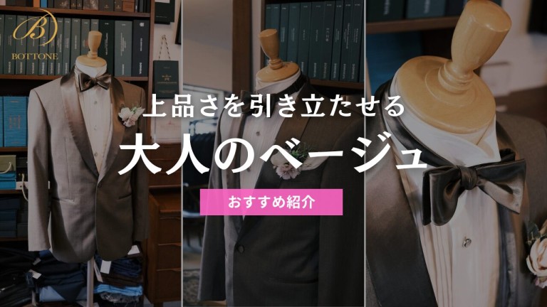 ベージュタキシードが大人の魅力を引き出す イタリアの生地を使用して仕立てたベージュタキシード。 実はボットーネでお仕立てするタキシ … 続きを読む 【新郎タキシード ベージュ】上品さを引き立たせる大人のカラー