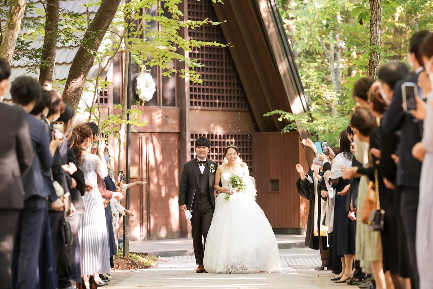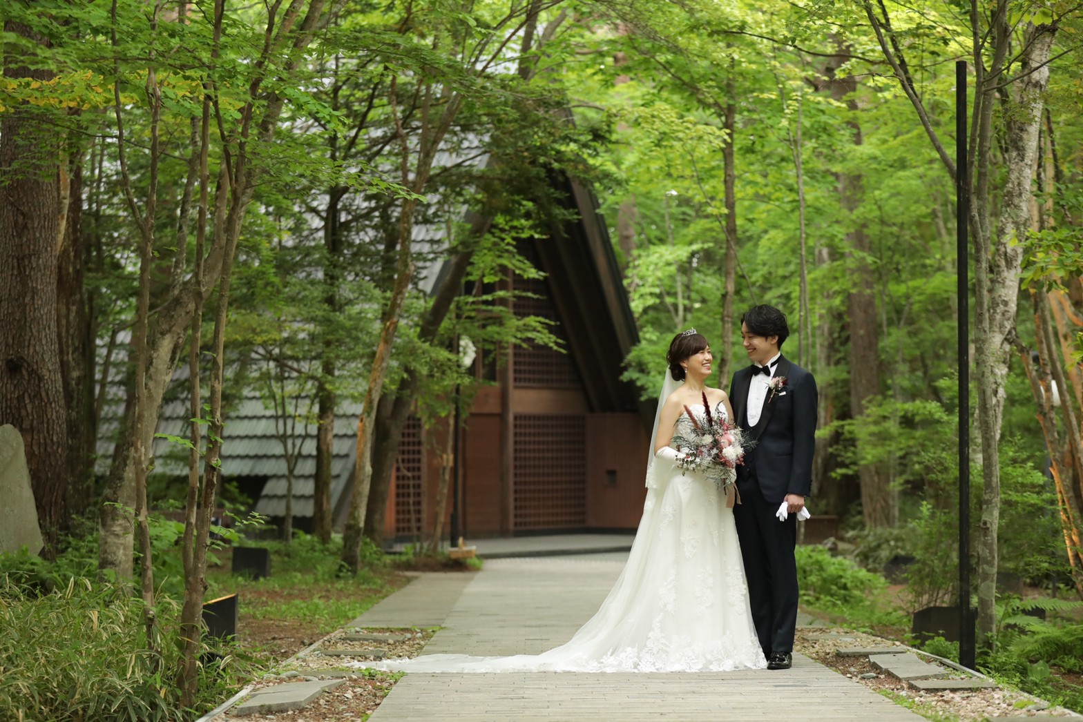軽井沢の澄んだ空気と美しい自然に包まれた、憧れの軽井沢高原教会での結婚式。